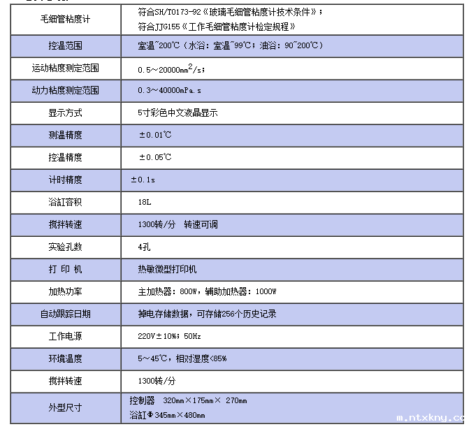 仪器符合GB/T265标准,也适用GB1841标准所规定的塑料树脂等其他产品的运动粘度。仪器采用先进的单片机、彩色中文液晶显示,温度控制准确、精度高,自动计时、自动计算运动粘度和动力粘度、自动打印测定结果,外形结果新颖,是一款国内较先进的运动粘度测定仪。